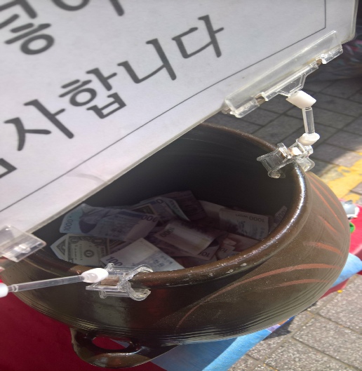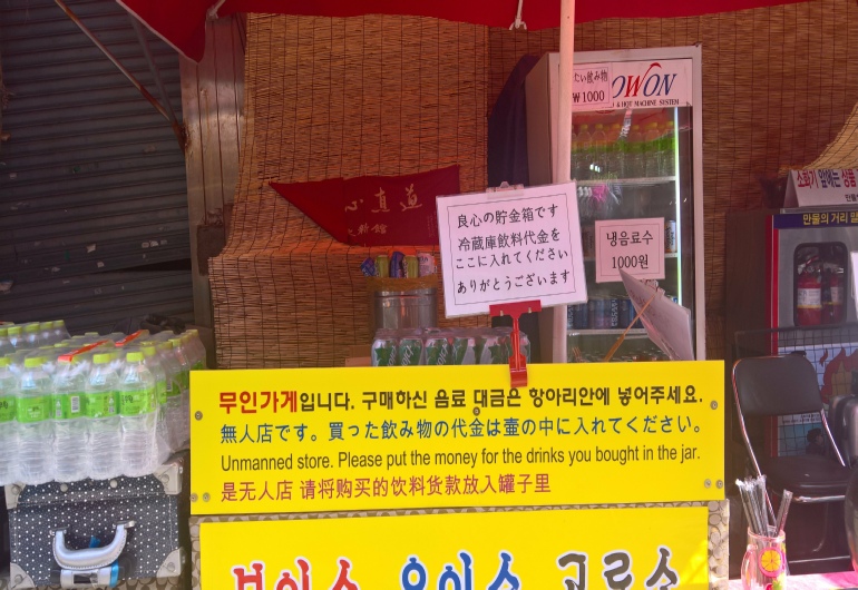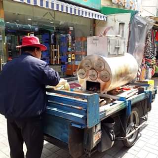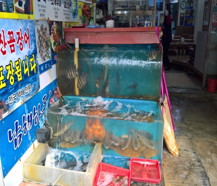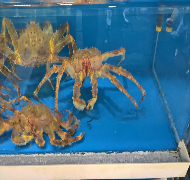 Man with mobile oven Honesty stall. If you want water What day is it and where are we This is where you put the money Fish for sale but no chips Not much meat on these Live fish for eating very small A kind of live crab I think
