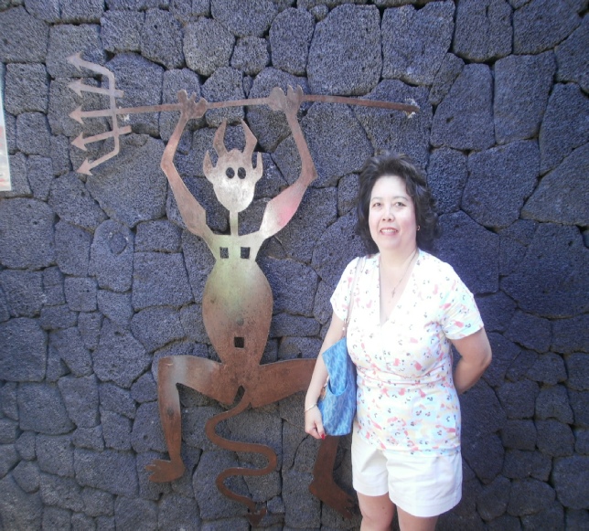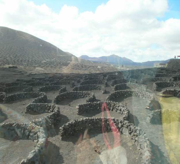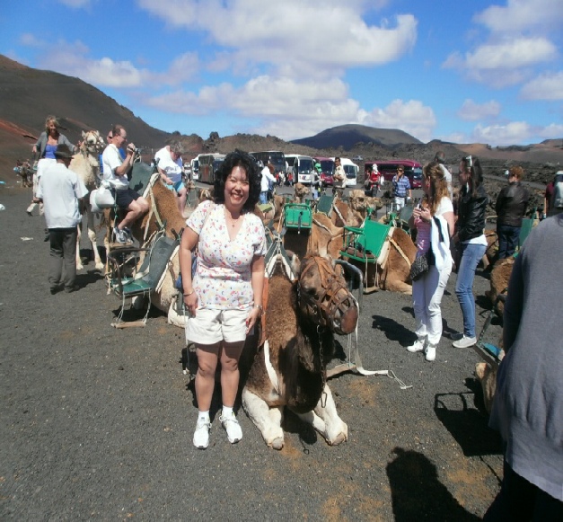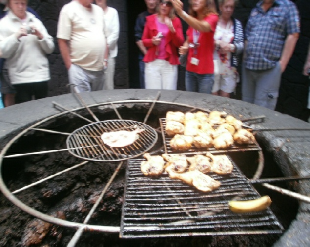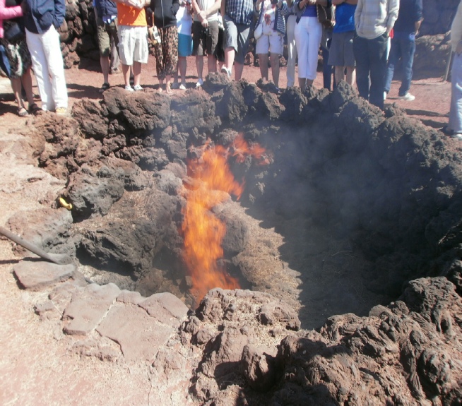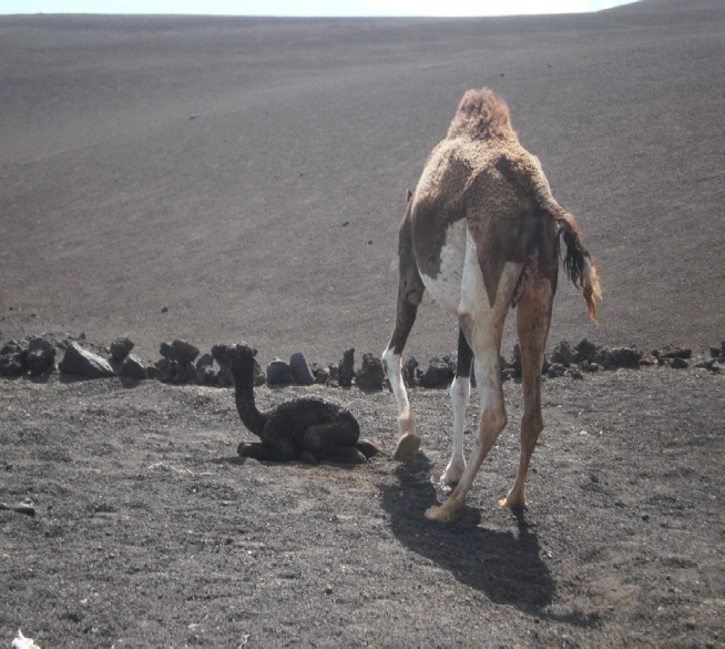 We could not afford a hire car so it was camel We watched this baby camel/taxi being born He is an ugly beast and I don’t mean the camel Twigs on fire mountain bursting into flames Cooking over a vent in fire mountian volcano Two devils on Lazarotte’s fire mountain Steam vent on fire mountain These walls protect the grape vines from the wind